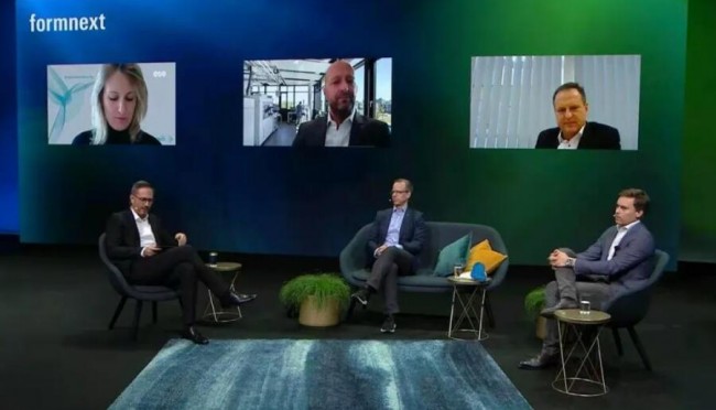 “AM A CENTRAL FUTURE TECHNOLOGY | IMPACT OF AM IN CHALLENGING TIMES” 专家讨论。上方屏幕左2为 Johannes Henrich Schleifenbaum教授(亚琛工业大学数字增材生产DAP学院主席,ACAM亚琛增材制造中心总裁)。