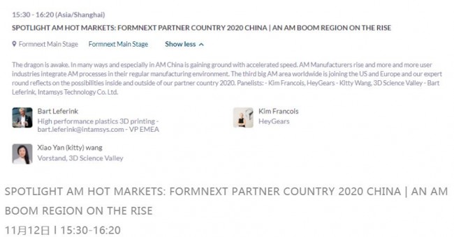 Formnext Connect 在线展示以及线上交流活动仍在继续。 创始人Kitty Wang(王晓燕) 女士将参加11月12日下午15:30-16:20在线举行的专家讨论,欢迎谷友们登录Formnext Connect 收看。