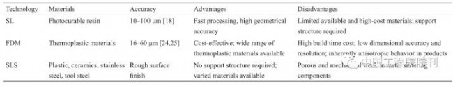 表1 SL、FDM和SLS三种AM技术的特征对比