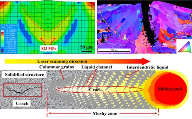 从熔池应力场、晶粒组织结构角度揭示了SLM成形变形铝合金的裂纹形成机制。