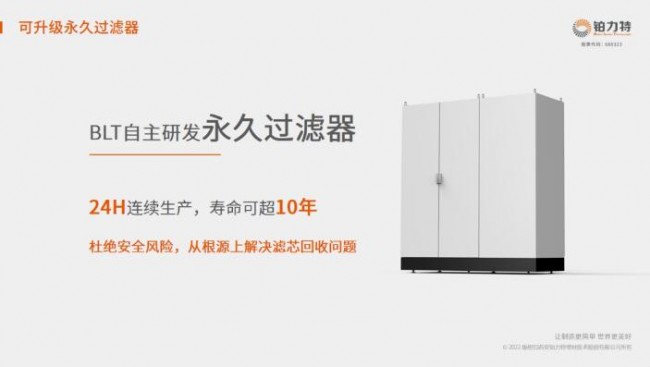 BLT-A400可实现过滤器灵活配置。针对规模化工业制造可升级配置永久过滤器,滤芯寿命超10年,满足连续生产,避免打印过程中因更换滤芯导致的停机风险,与更换滤芯导致的设备空闲,提高设备使用率,同时可以减少滤芯消耗的成本和危废滤芯处理的不便。