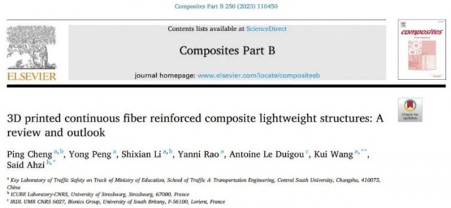 原始文献:Cheng P, Peng Y, Li S, Rao Y, Le Duigou A, Wang K, et al. 3D printed continuous fiber reinforced composite lightweight structures: A review and outlook. Composites Part B: Engineering. 2023; 250: 110450.