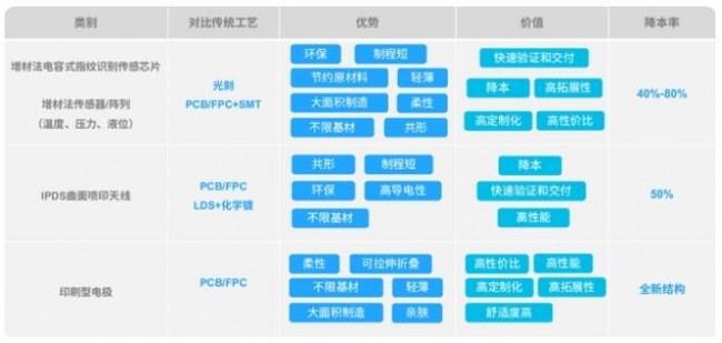 具体来说,相较于减材法,增材法的优势可以体现在以下几个方面:首先,传统的增材法不受基材限制,能够突破硅基的面积限制,也为制备柔性电路创造了有利条件,因此集成微电路可以被印刷在更为复杂的物体表面;其次,增材法工艺流程更短,原则上只需印刷和烧结两个步骤,工艺流程具有更优的环境与经济性能;第三,增材法无需依赖掩模版,适合快速打样和满足下游的个性化定制需求。