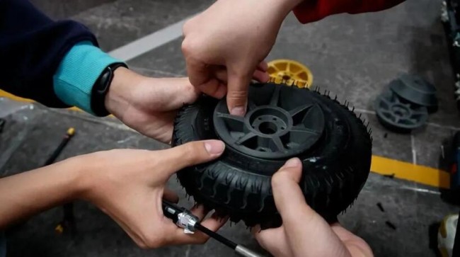 “我们没有一定说是用增强碳纤来打印最终的零件,学生会自由的调整并且测试这个零件,比如说早期的平衡车第一代的轮毂我们是用E2CF 设备3D打印的增强碳纤维的,对比铝合金材质,大幅减轻轮子重量,制动提高,惯性小了。”