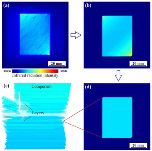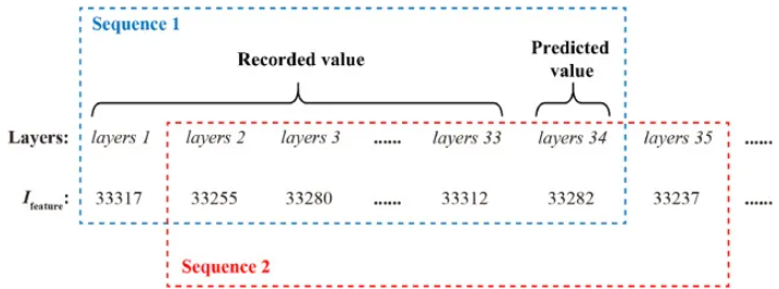 (3) 短期序列相关性:如图5(d)所示,圆圈区域对应于LPBF过程中的意外事件,具体来说,是扫描暂停导致粉末床温度降低。这导致在成形过程中红外辐射强度较低,从而导致计算出的Ifeature较低。此更改会显著影响后续图层,导致Ifeature减少。