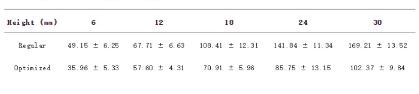 表1. 不同高度下规则和优化截锥构件的残余应力(MPa)。