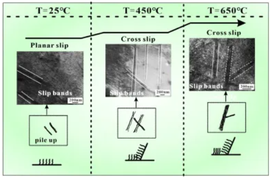 W0和β可视为温度引起的损伤。如前所述,这两个参数W0和β对于评估抗疲劳性至关重要,两者的增加都是有价值的。此外,W0也可以理解为材料适应缺陷的能力,与疲劳延性系数和疲劳强度系数的乘积相关。因此,同时提高材料的强度和塑性对于通过增加W0来提高材料的LCF性能至关重要。此外,位错引起的循环软化(图3d)在高温下比RT更明显,基体的强化能力较弱,这也是450和650°C下的疲劳寿命比RT显著降低的原因(图15a)。位错在450和650°C下的交叉滑移不利于基体强度的提高,对W0有负面影响。
