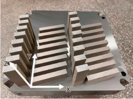 LPBF激光光斑直径为90μm,功率为300W,扫描速度为1000mm/s,扫描间距为50μm,层厚为80μm。相邻粉末层之间相差67°双向扫描策略。竣工样品测量为70 mm×10 mm×20 mm和20 mm×10毫米×70 mm,竣工样品的密度为7.91g/cm3。