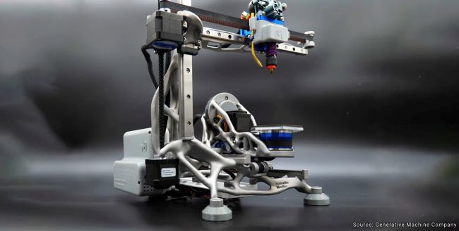 这款名为GenerationOne的五轴3D打印机采用创新性的生成式设计。尽管延续了经典的悬臂结构和线性导轨,并采用通用标准组件,但其革命性地运用金属3D打印技术制造生成式设计铝制框架,赋予设备极具流动感的有机形态,在同类产品中独树一帜。