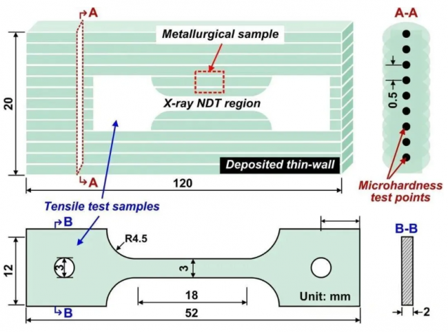 结果表明,将电弧电流从140A提高至160A,不仅使沉积薄壁件的有效宽度系数从70.14%提升至75.45%,还通过将加工余量从3.44mm减少至2.58mm,使成形精度提高了25%。然而,当电弧电流进一步增至180A时,孔隙率从0.51%显著上升至2.06%。