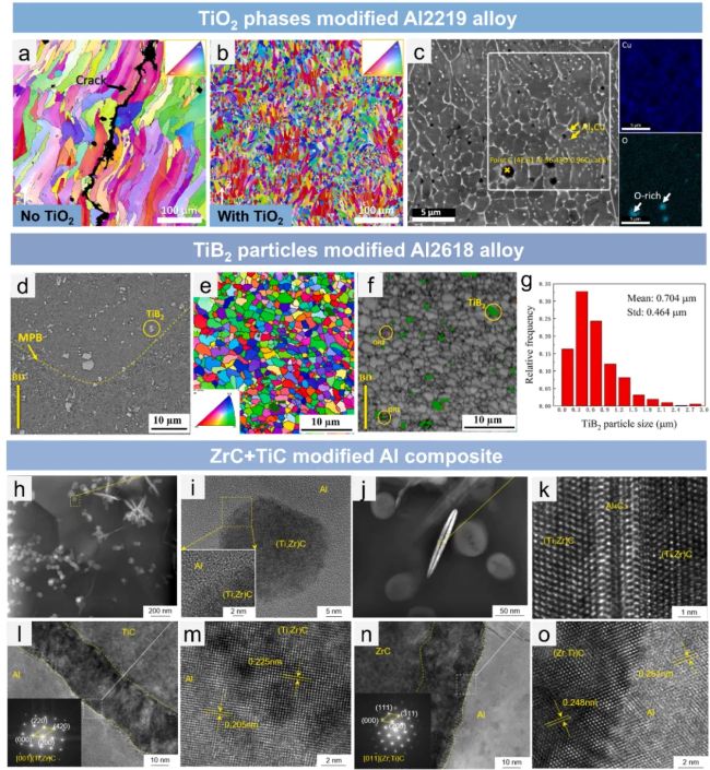 Al-Cu系:添加Sc、Zr形成L1₂-Al₃(Sc,Zr)相,既能细化晶粒(从柱状晶变为等轴晶),又能抑制裂纹。团队提到一款Al-Cu-Mg-Si-Ti合金,打印态屈服强度达473 MPa,250℃下仍能保持150 MPa;