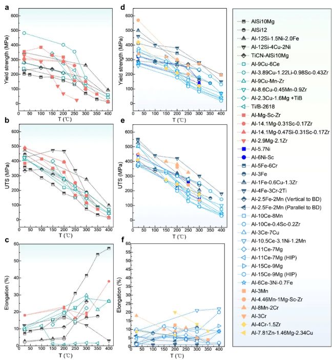 本文总结了目前报道的耐热铝合金在常温及高温下的力学性能,为后续耐热铝合金的开发提供了全面的性能数据库。