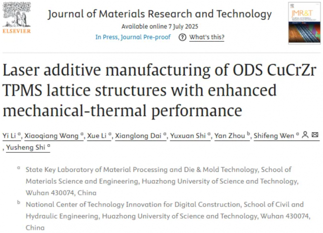 华中科技大学研究团队提出了一种结合材料成分和宏观结构设计的优化方法。通过激光粉末床融合(LPBF)技术制造了由氧化物弥散强化(ODS)CuCrZr合金组成的三周期最小表面(TPMS)点阵结构。相关研究论文发表在Journal of Materials Research and Technology期刊。本期谷·专栏将简要分享该研究成果。