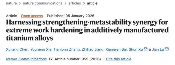 Chen, X., Xie, Y., Zhang, T. et al.Harnessing strengthening-metastability synergy for extreme work hardening in additively manufactured titanium alloys. Nat Commun17, 959 (2026). https://doi.org/10.1038/s41467-025-67683-8