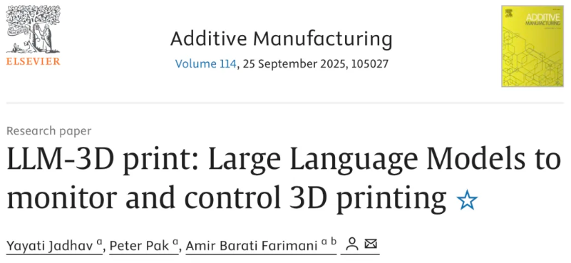 该研究的通讯作者Amir Barati Farimani表示:”未来是自适应的。将大语言模型集成到3D打印流程中代表了一项重大进步。随着这些模型的发展,它们对更丰富的多模态数据进行推理的能力将解锁更多功能。就目前而言,这项工作为构建真正智能、自主增材制造系统奠定了基础,使其能够达到前所未有的精度和可靠性水平。”