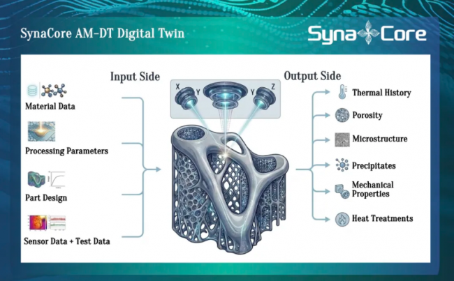 SynaCore CTO Guglielmo Vastola博士指出:”AM-DT数字孪生根植于第一性原理。’孪’是对物理世界的镜像,’生’则是自我进化的生命力。物理本源——从牛顿力学描述熔池流动,到玻尔兹曼方程揭示热传导与微观结构演化,再到热力学定律约束相变边界,通过AM-DT数字孪生的多尺度仿真实现对变形预测与变形预补偿、微观组织预测,缺陷预测、沉淀相预测、机械性能预测以及热处理预测,为增材制造的规模化应用打下坚实基础。”